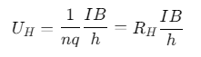 其中 RH​=1​/nq称为霍尔系数,其正负由载流子电荷性质决定,大小为载流子浓度的倒数。